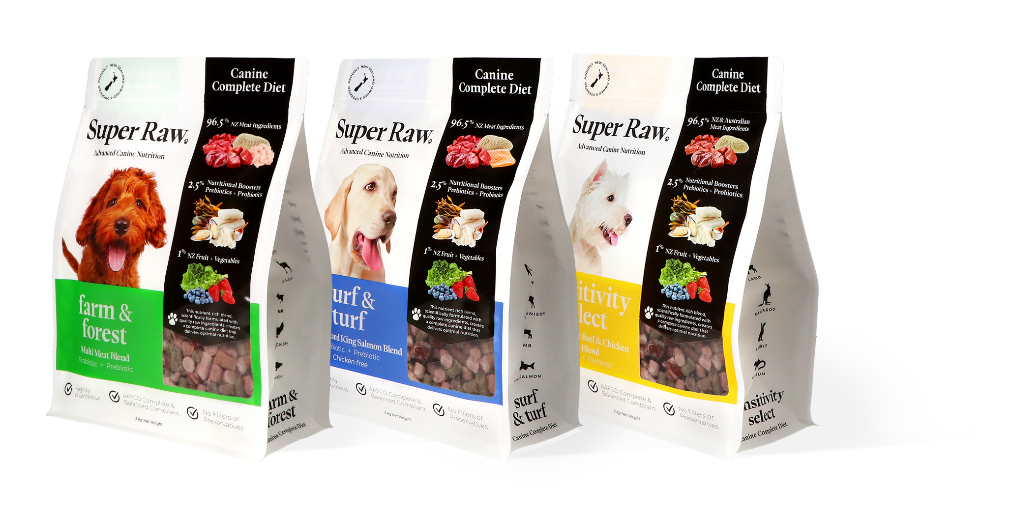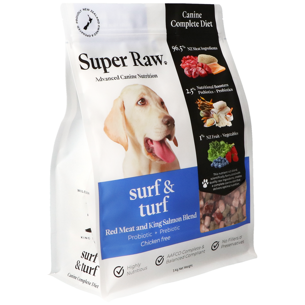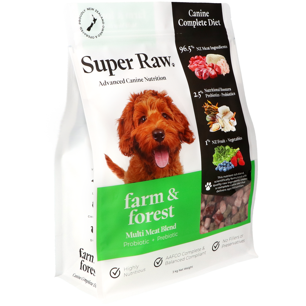 Add in some quality NZ super ingredients plus a quality prebiotic and probiotic then it's not just Raw it is SUPER RAW. These complete and balanced recipes form the foundation of your dog’s raw diet.
